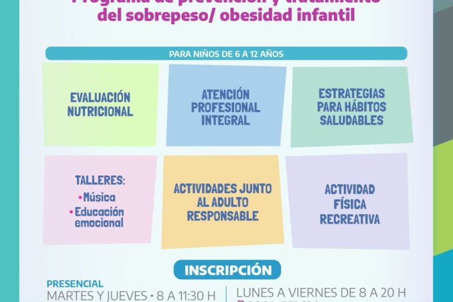 Este programa contempla un seguimiento semanal desde las áreas de pediatría, nutrición, psicología y trabajo social. Además, se brindarán clases de educación física, música y una serie de talleres sobre temáticas claves como alimentación saludable, publicidad engañosa, autocontrol, autoestima, imagen corporal, comunicación efectiva, resolución de conflictos, asertividad, relajación, actividad e inactividad física.
