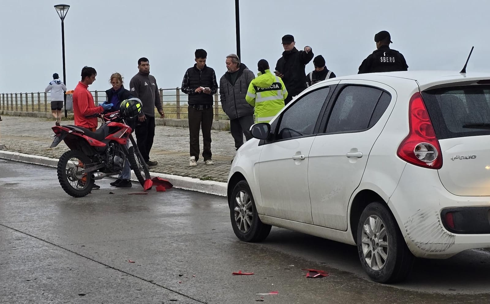 El siniestro involucró a un automóvil Fiat Palio, conducido por Daniel Pressacco, de 52 años, y una motocicleta Motomel CX 150, manejada por Mauricio Molina, de 21. Como consecuencia del impacto, el motociclista sufrió un raspón en su mano derecha.