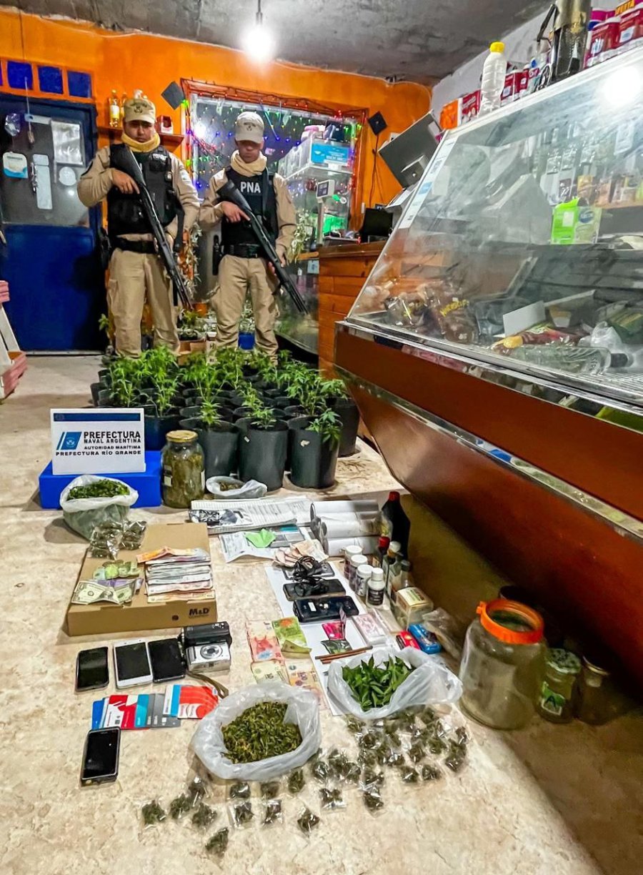 El personal, siguiendo indicaciones del Juzgado Federal de Río Grande, a cargo de la Dra. Mariel Borruto, registró el lugar y secuestró cogollos de marihuana, semillas, elementos de corte y fraccionamiento y dinero en efectivo en moneda nacional, dominicana y chilena.