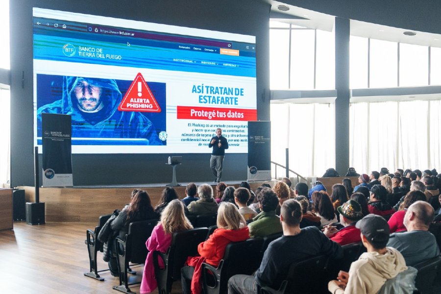 El Banco de Tierra del Fuego brindó la capacitación “Ciberestafas: lo que tenés que saber para estar protegida” a cargo del especialista internacional, Emiliano Piscitelli. El evento se llevó a cabo en el Centro Cultural Yaganes en Río Grande y en Ushuaia en la Fábrica de Talentos.