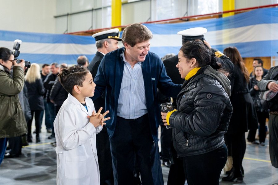 Durante el acto oficial acompañaron al Gobernador funcionarios del gabinete provincial; legisladores; concejales, excombatientes de Malvinas; autoridades del Poder Judicial y de las distintas fuerzas de seguridad; así como vecinos y vecinas de la ciudad.
