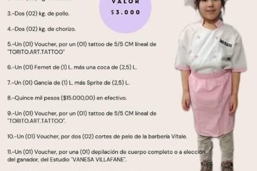La familia está vendiendo bonos de contribución por un valor de $3,000 cada uno para cubrir los gastos de estadía y otros costos relacionados con el tratamiento. Los premios de la rifa incluyen desde vouchers para tatuajes, kilos de asado, pollo y chorizo, hasta efectivo y servicios de belleza.